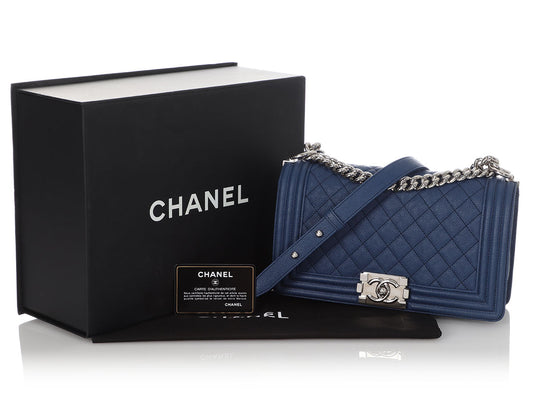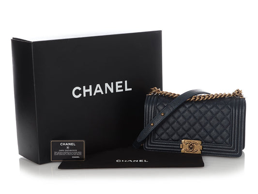Chanel Old Medium Navy Quilted Caviar Boy Bag