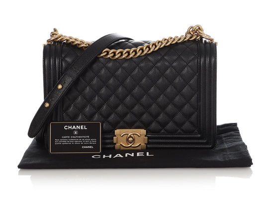Chanel New Medium Black Quilted Caviar Boy Bag
