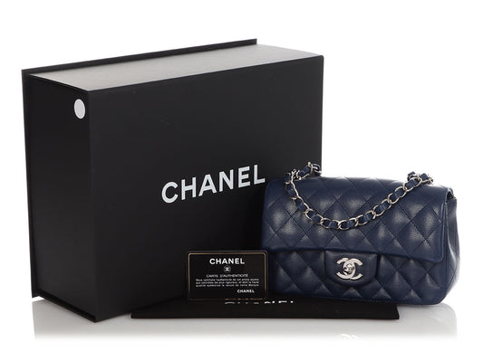 Chanel Mini Navy Quilted Caviar Rectangular Classic