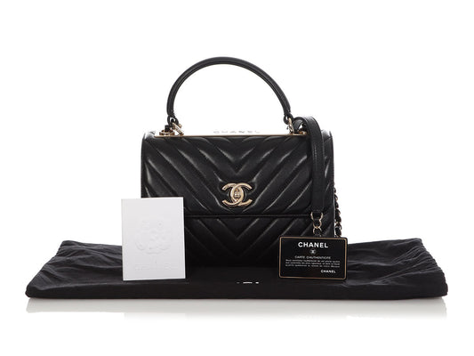 Chanel Medium Chevron-Quilted Black Lambskin Trendy CC Flap