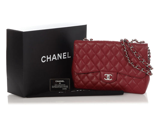 Chanel Jumbo Dark Red Quilted Caviar Classic Single Flap