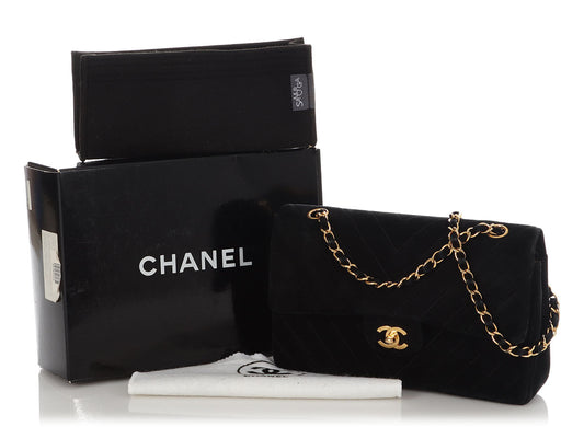 Chanel Medium/Large Black Chevron-Quilted Suede Classic Double Flap