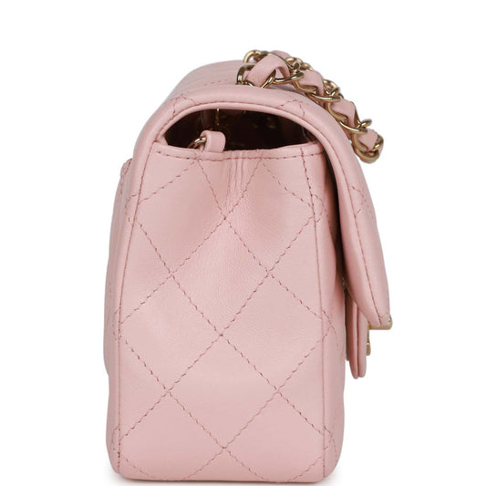Chanel Mini Rectangular Flap Bag Pink Lambskin Light Gold Hardware