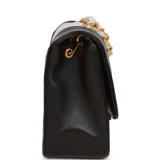 Chanel Vintage Mini Mademoiselle Bag Black and White Lambskin Gold Hardware