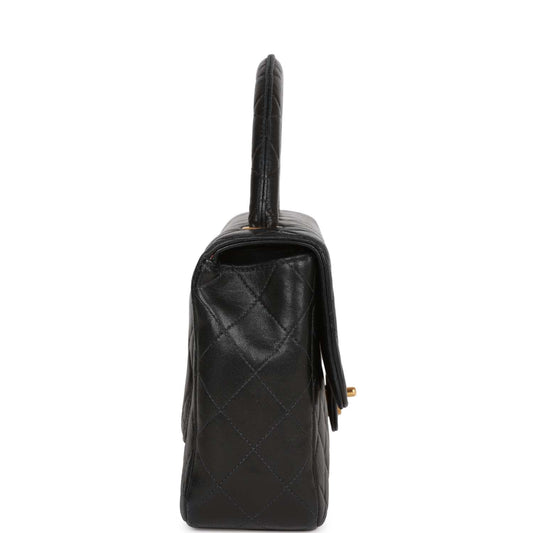 Chanel Vintage Kelly Parent Flap Bag Black Lambskin Gold Hardware