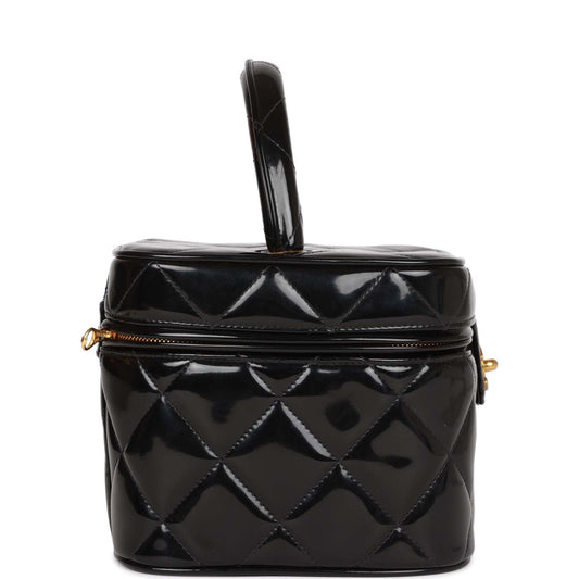 Chanel Vintage Vanity Heart Mirror Bag Black Patent Gold Hardware