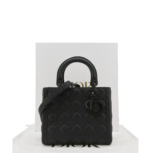 CHRISTIAN DIOR Lady Dior Ultra Matte Cannage Calfskin Leather Shoulder Bag Black