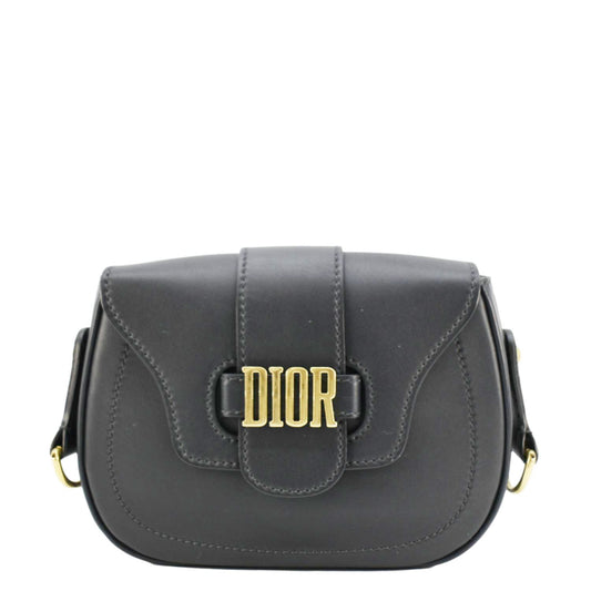 CHRISTIAN DIOR D Fence Calfskin Leather Saddle Bag Black