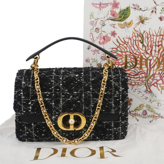 CHRISTIAN DIOR Jolie Small Cannage Tweed Top Handle Shoulder Bag Black