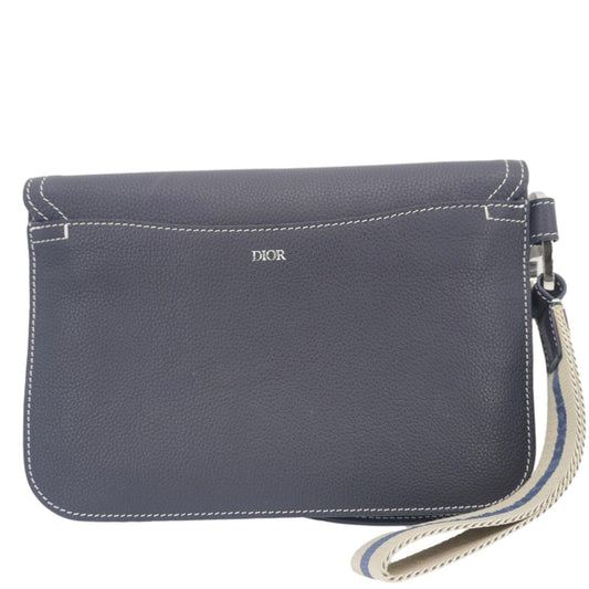 CHRISTIAN DIOR Saddle Leather Wristlet Navy Blue.