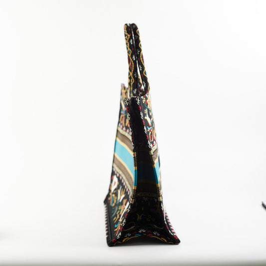 Christian Dior Large Black Multicolour Embroidery Book Tote