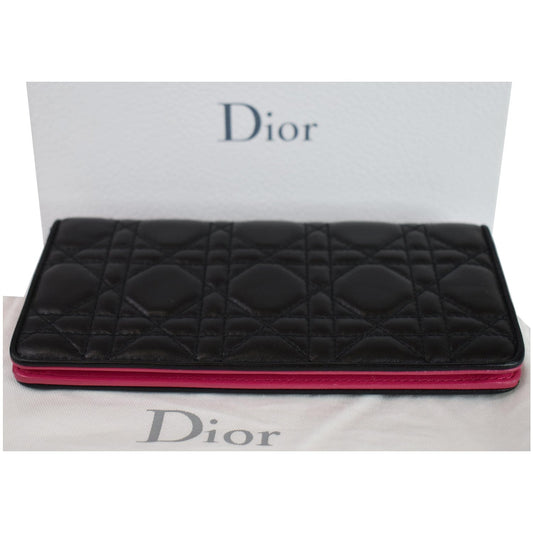 CHRISTIAN DIOR Cannage Lady Dior Charm Leather Wallet Black