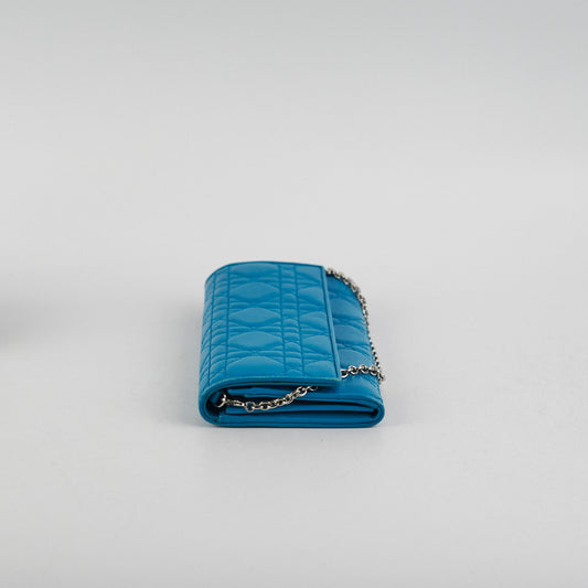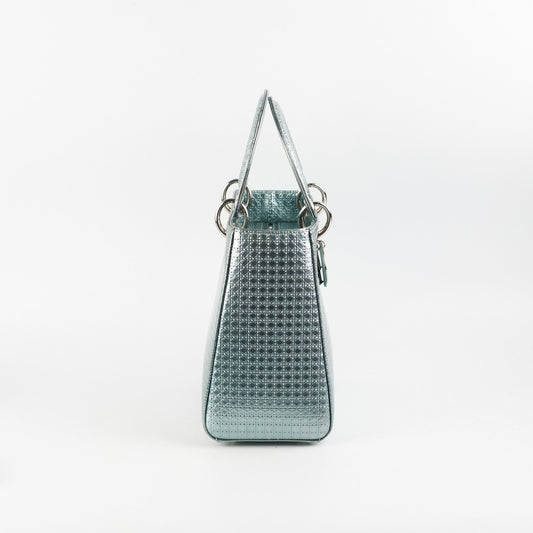 Christian Dior Lady Dior Medium Metallic Blue Patent
