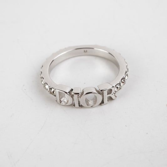 Christian Dior Logo Silver Rhinestone Ring Size M Costume Jewellery
