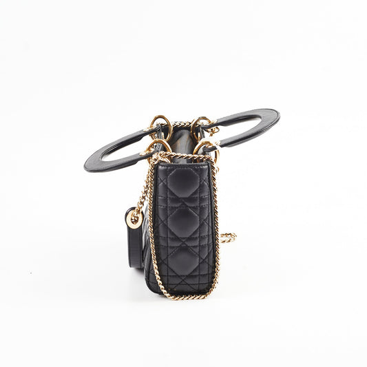 Christian Dior Lady Dior Mini Cannage Leather 2 Way Handbag Black