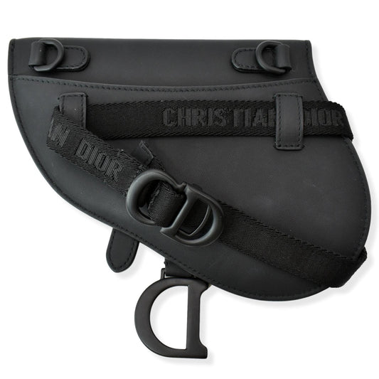CHRISTIAN DIOR D Fence Calfskin Leather Saddle Bag Black