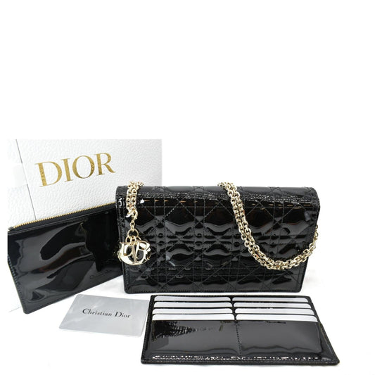 CHRISTIAN DIOR The Lady Dior Leather Chain Pouch Bag Black
