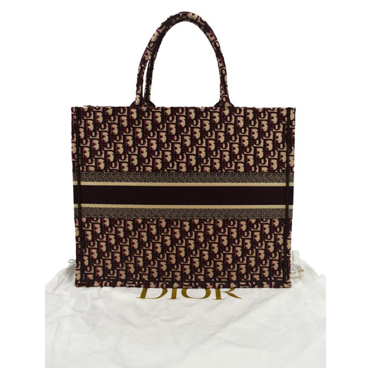 CHRISTIAN DIOR Book Oblique Embroidered Canvas Tote Bag Burgundy