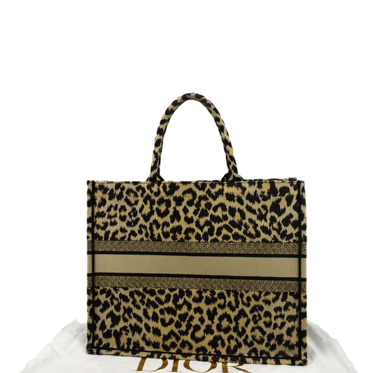 CHRISTIAN DIOR Leopard Large Book Mizza Embroidered Tote Bag Beige