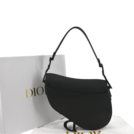 CHRISTIAN DIOR Saddle Calfskin Leather Satchel Bag Black