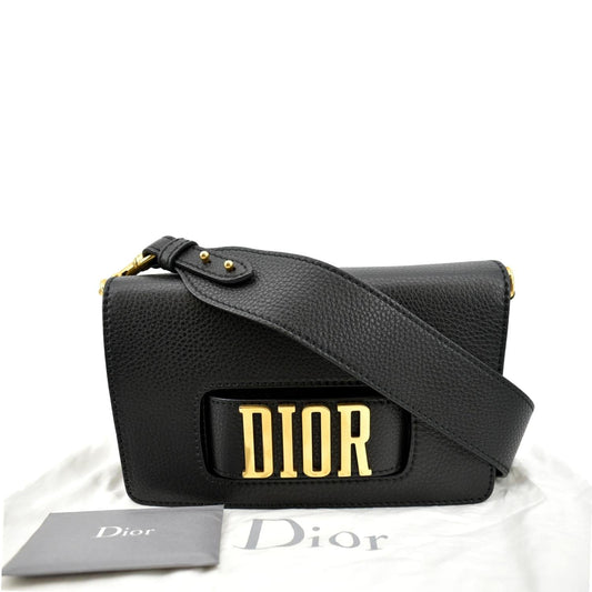 CHRISTIAN DIOR Dio(r)evolution Flap Grained Calfskin Shoulder Bag Black