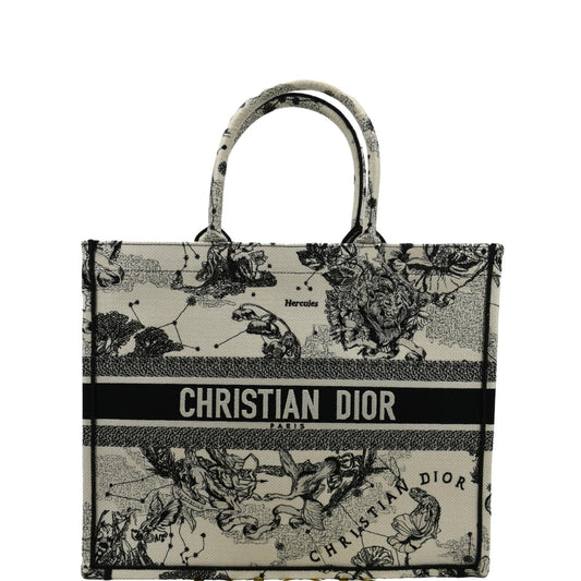 CHRISTIAN DIOR Book Zodiac Embroidery Canvas Tote Bag Latte