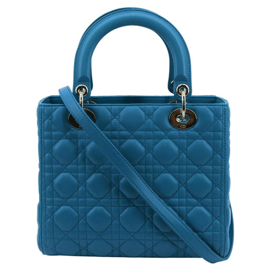 CHRISTIAN DIOR Medium Lady Dior Cannage Lambskin Leather Shoulder Bag Blue