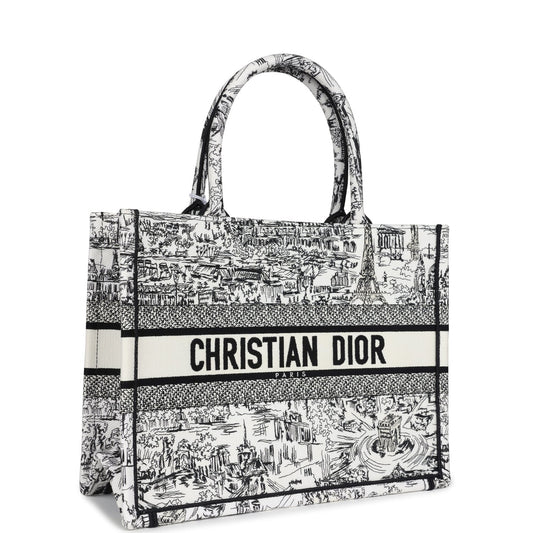 Christian Dior "Paris All Over" Book Tote Medium White and Black Embroidered Canvas