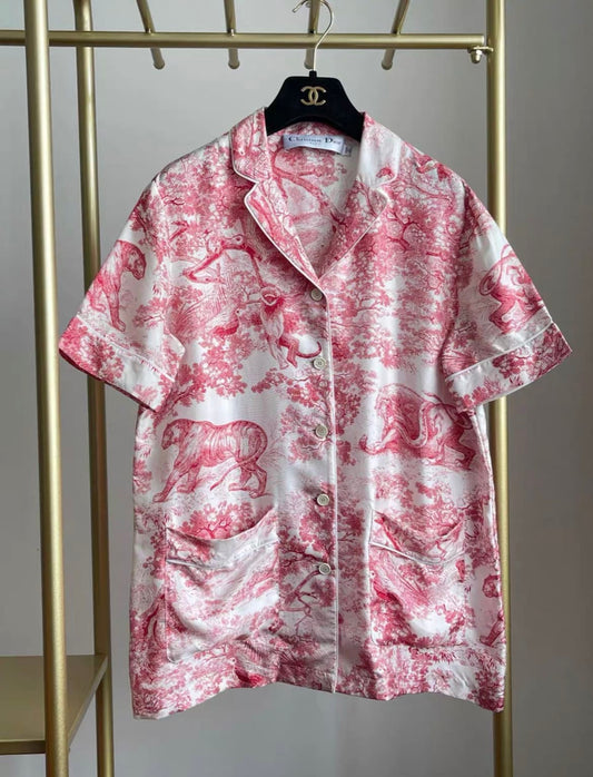 Dioriviera Dior Chez Moi Short-Sleeved pink silk Shirt And short set