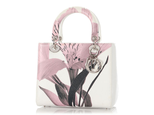 Dior Medium White and Pink Deerskin Floral Lady Dior