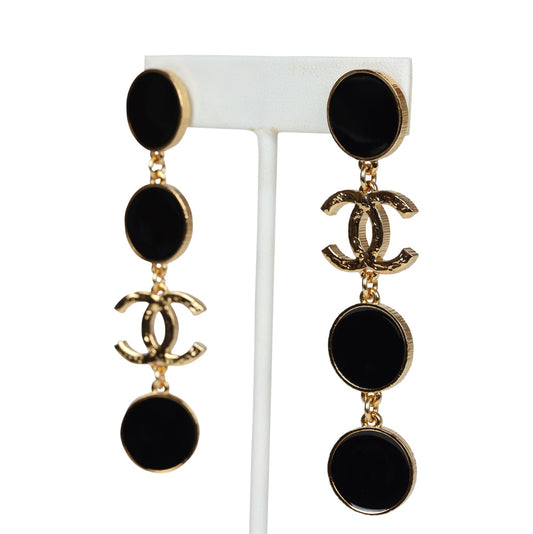 Chanel Round Dangle CC Earrings Black Enamel & Gold Metal