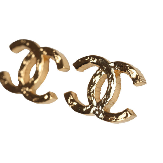Chanel Small Hammered CC Stud Earrings Gold Tone Hardware