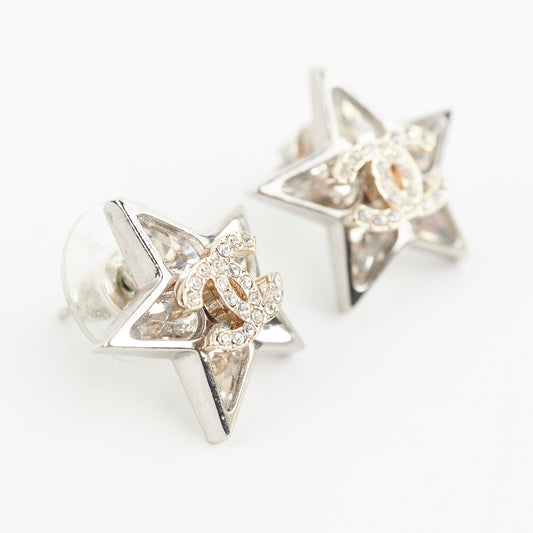 Chanel Star Logo Rhinestone Silver Earrings Costume Jewellery
