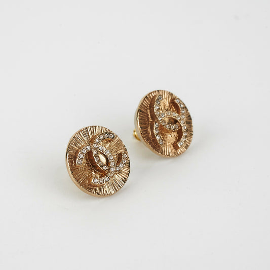 Chanel Round Rhinestone Logo Earrings Costume Jewellery