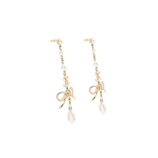 Chanel pearl / cc logo / bow tie drop earrings gold tone