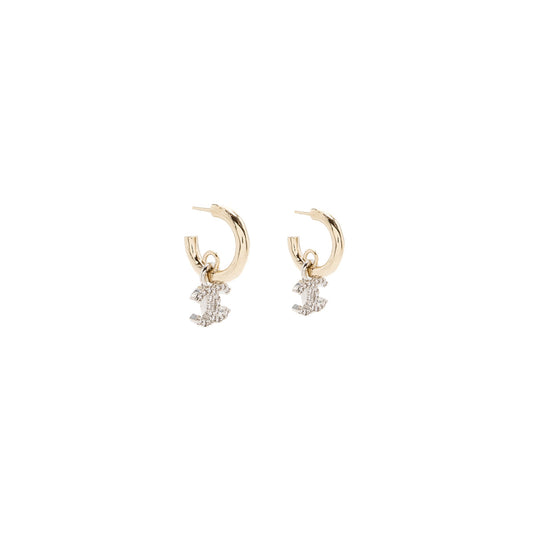 Chanel Letter CC/Logo Earrings Crystal Light Gold Tone