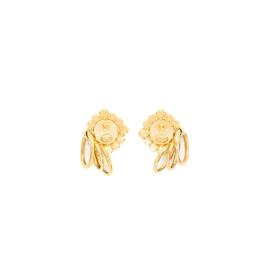 Chanel mini round with CC logo rainbow earrings light gold tone
