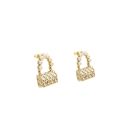 Chanel Flap Bag Dropped Earrings With Pearl Light Gold Tone
