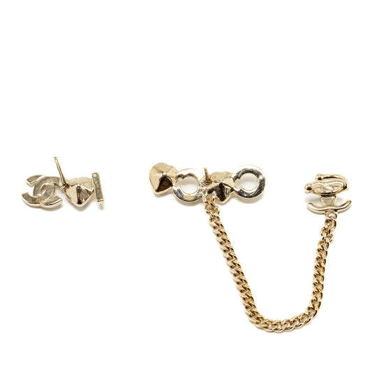 Chanel I Love Coco Heart Chain Climber Earrings Crystal/Light Gold Tone
