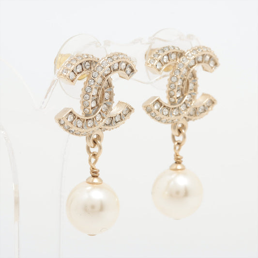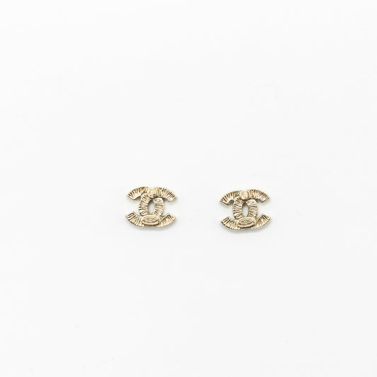 Chanel Crystal Letter Logo Earring Light Gold Tone