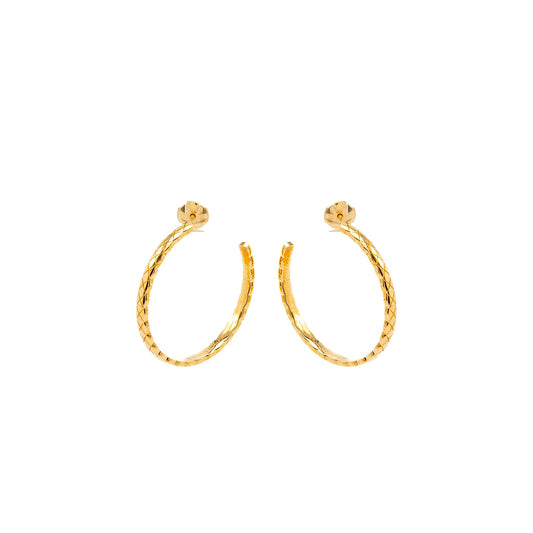 Chanel Coco Crush Hoop Earrings Quilted Motif Beige Gold