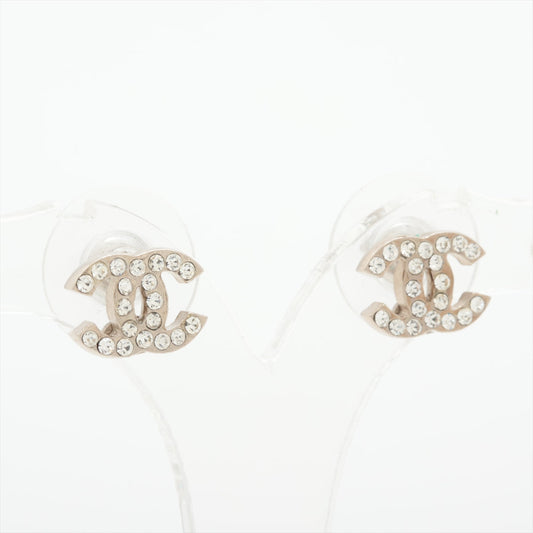 Chanel Coco Logo Rhinestone Silver Stud Earrings Costume Jewellery