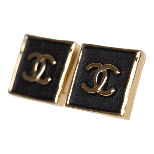Chanel CC Stud Earrings Black Enamel and Gold Metal