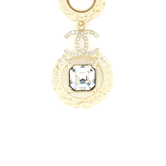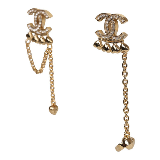 Chanel CC Rhinestone and Gold Metal Dangle Ear Cuff Earrings