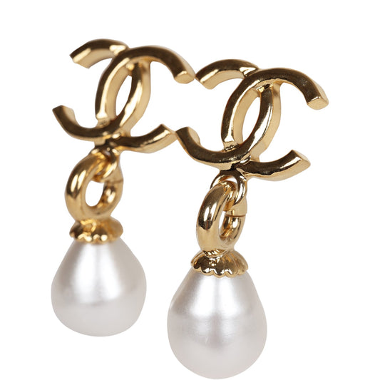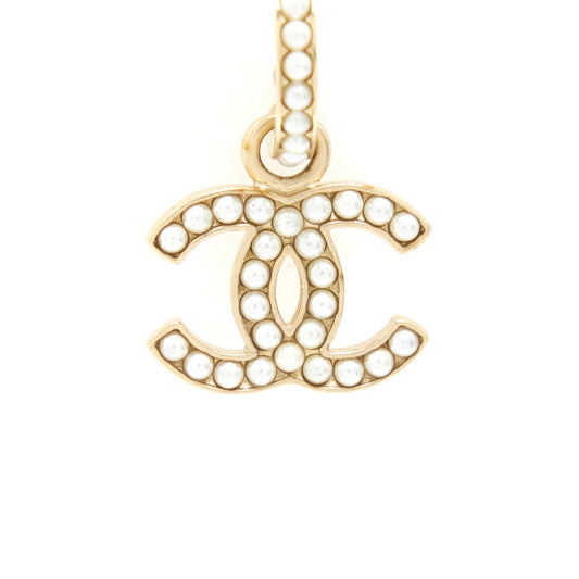 Chanel CC Pearl Drop Dangle Earrings Pearl & Gold Metal