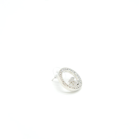 Chanel CC Logo Earrings With Crystal Sliver Tone