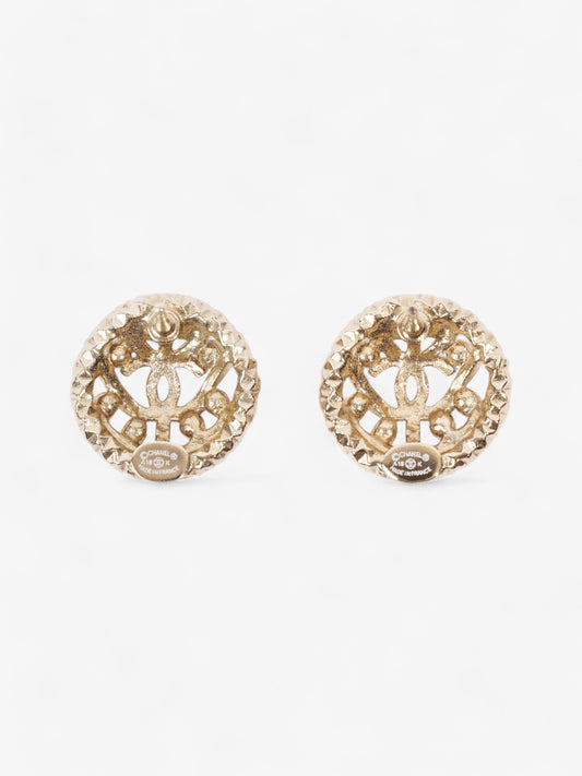 Chanel CC Round Pearl Earrings Gold Base Metal