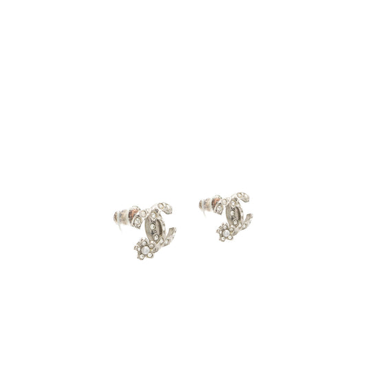 Chanel CC Logo Bow Earrings Crystal Silver Tone