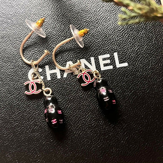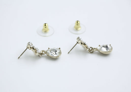 Chanel C19A Rhinestone CC Drop Dangle Stud Earrings