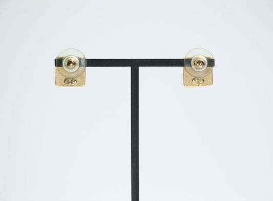 Chanel Vintage 03P Metal Square Black Stud Earrings
